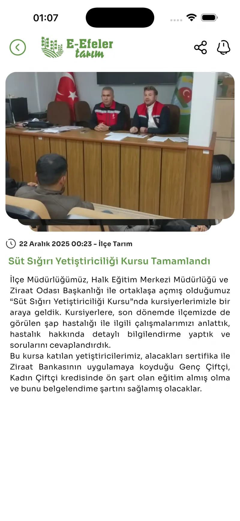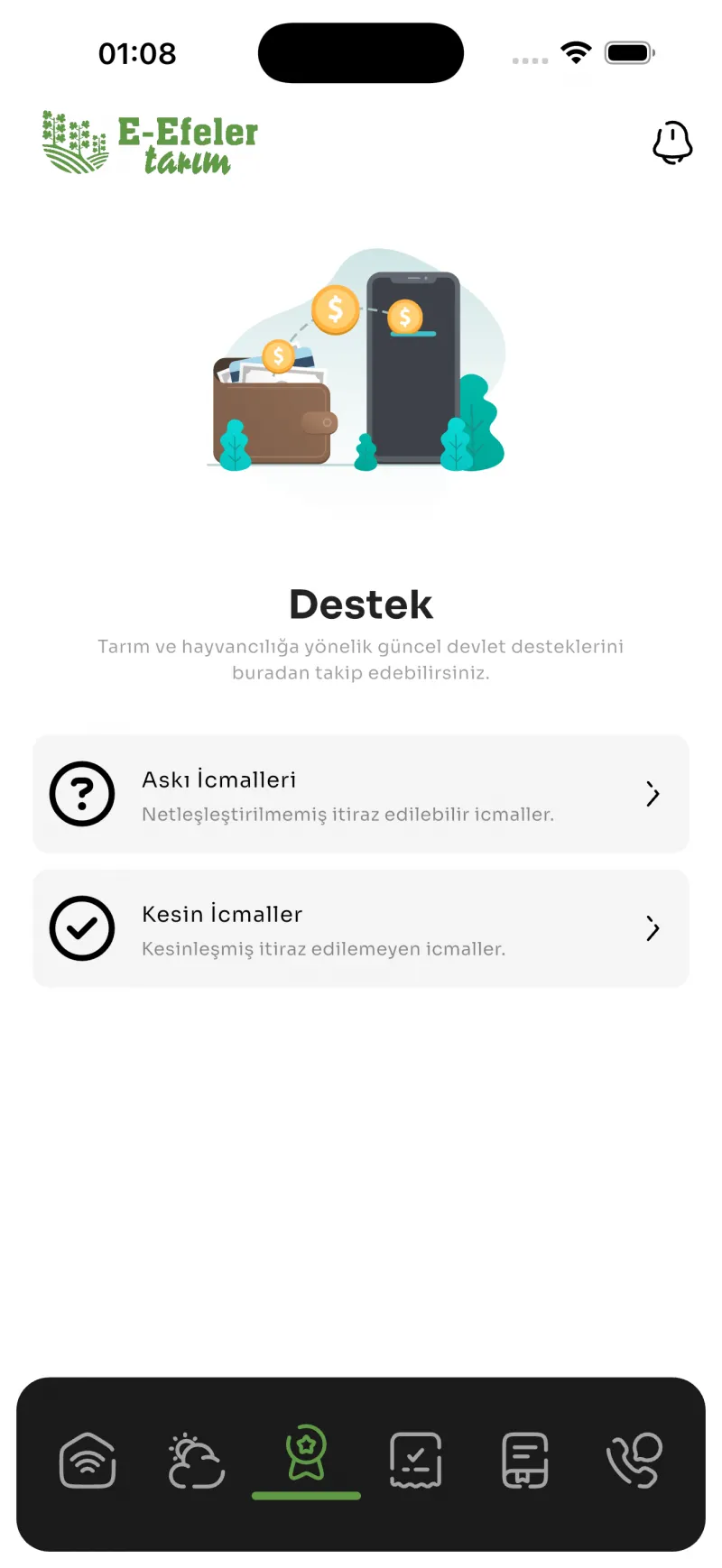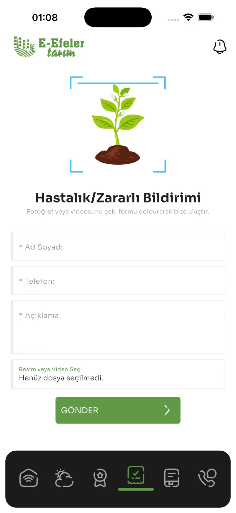 task_altE-Efeler Tarım uygulaması, önemli duyurular ve uyarılar için anlık bildirimler gönderir