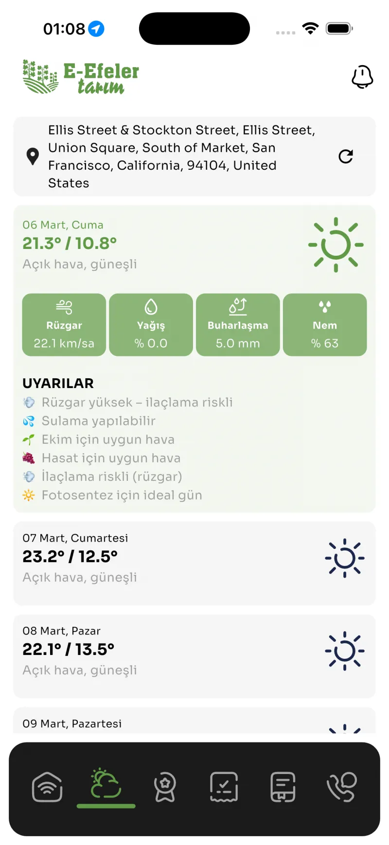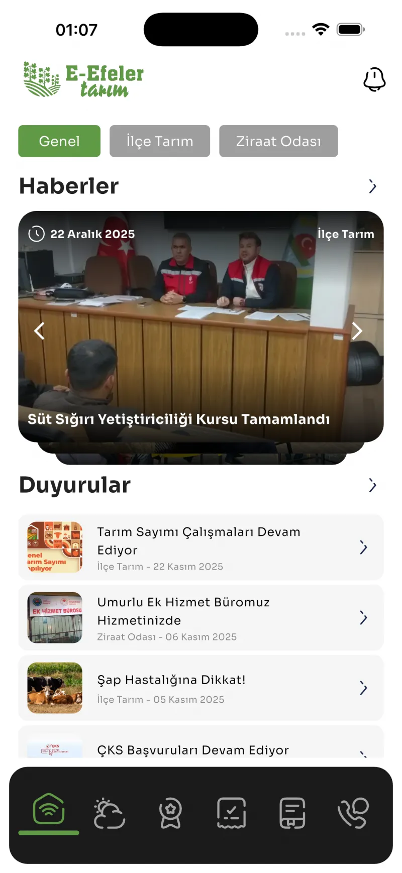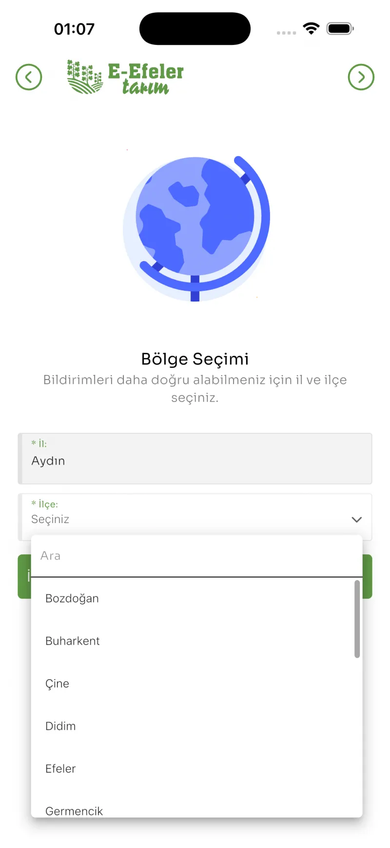 task_altE-Efeler Tarım uygulaması, önemli duyurular ve uyarılar için anlık bildirimler gönderir